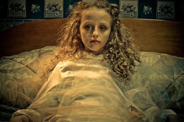 I was just starting to doze off when something made me open my eyes and look down to the foot of the bed and I almost shit myself: Meg was standing down there. Eyes all rolled up white in her head. And blood spilling out where her tears are supposed to.
